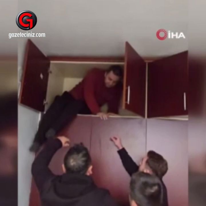 Konya'da, 49 suçtan aranan Mehmet A., polis tarafından saklandığı evde gardırobun üstünde battaniye altında yakalandı.
