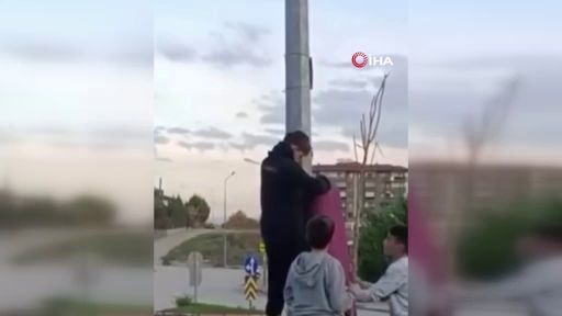 Olay, Bursa’nın bir mahallesinde meydana geldi. Türk bayrağının katlandığını gören çocuklar, bayrağa zarar gelmemesi için dikkatlice davrandı. Sırayla direğe tırmanan çocuklar, birkaç denemenin ardından katlanmış bayrağı açmayı başardı.