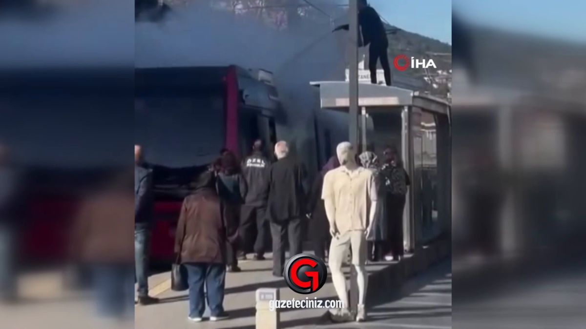 BURSA'DA SEYİR HALİNDEKİ TRAMVAYDA YANGIN PANİĞİ