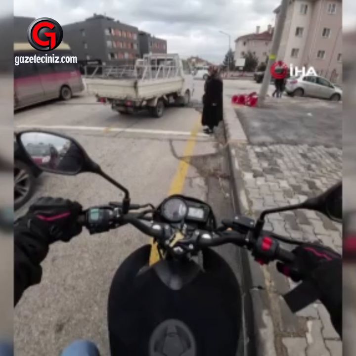 Eskişehir'de motosiklet sürücüsü Berat Akbaş, yoğun trafikte karşıya geçemeyen yaşlı kadına yardımcı oldu.