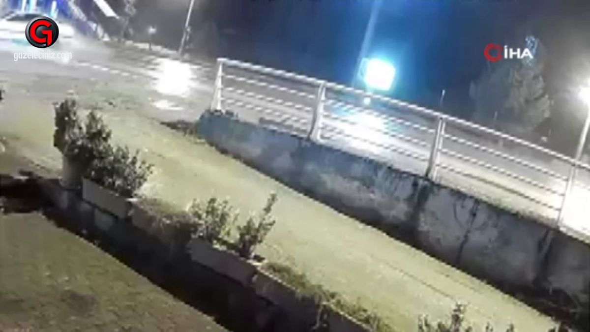 Karabük'te yağış nedeniyle kontrolden çıkan otomobil, kaldırıma ve korkuluklara çarptı. Kaza, güvenlik kamerasına yansıdı.