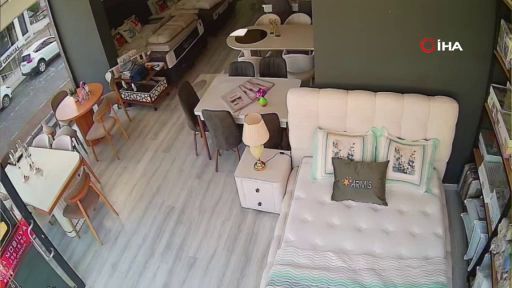 MOBİLYA MAĞAZASINDA EŞİNİ DARBETTİ: O ANLAR KAMERADA
