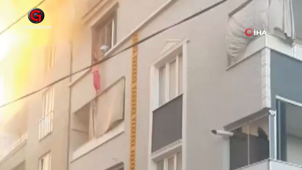 Bursa’nın Gürsu ilçesinde 3 katlı binanın çatı katının alevlere teslim olduğu anlarda babaanne ve torunu vatandaşların gerdiği battaniyenin üzerine atlayarak kurtuldu